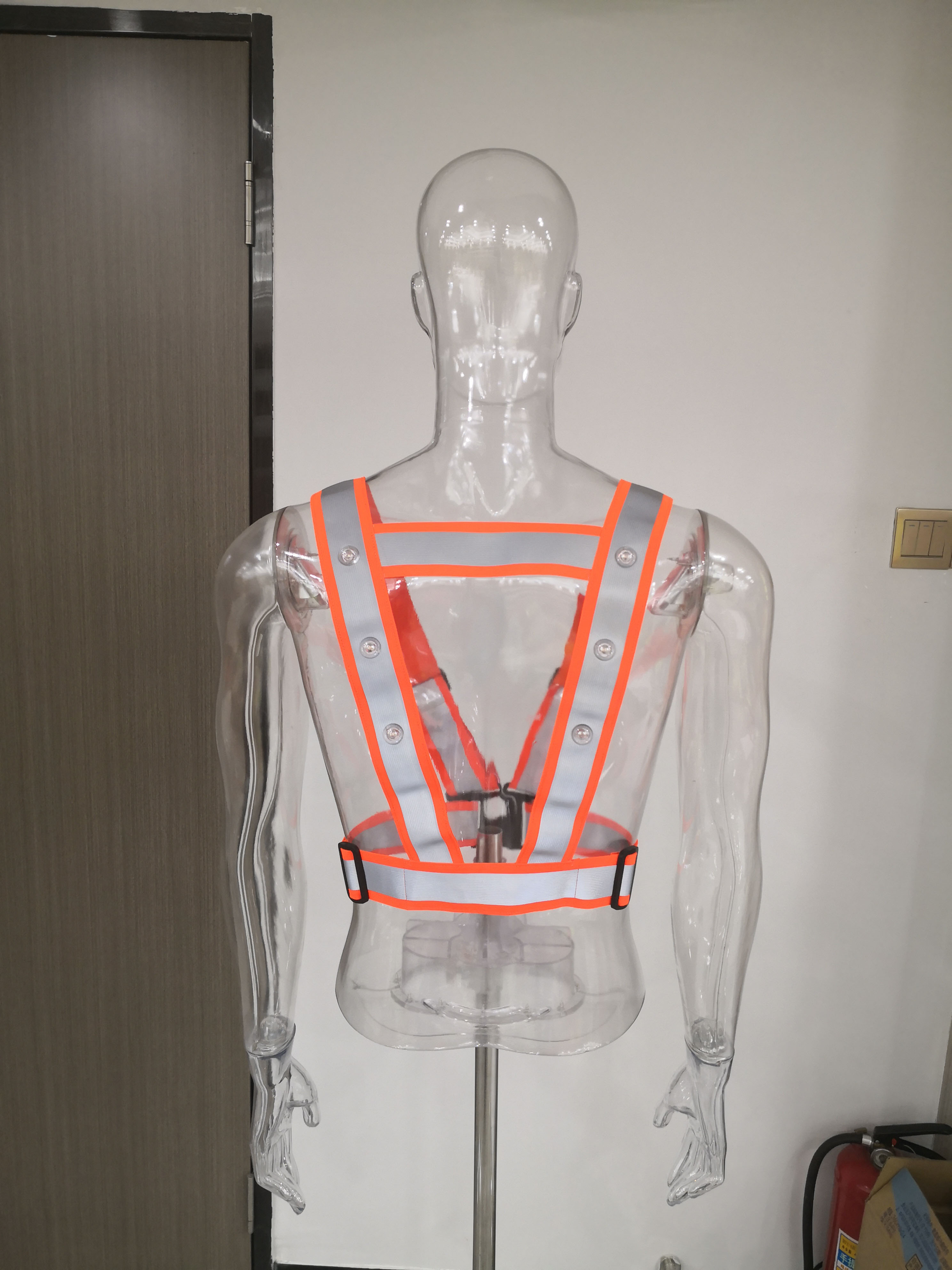 · Material:polyester webbing,reflective heat transfer film,buckle,LED